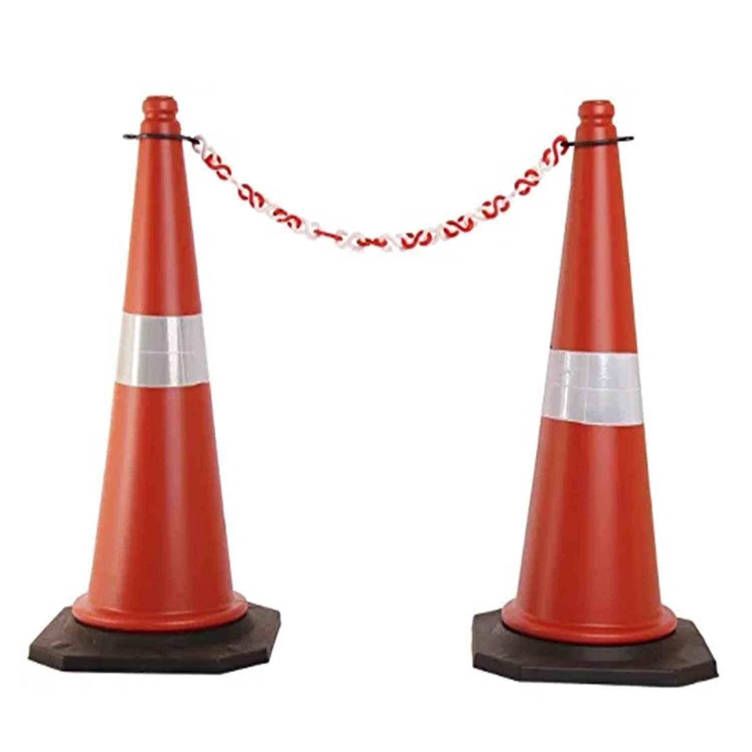 Upgrade your traffic control with the Kunplast 1000mm PVC Orange Road Traffic Cone. This set of 2 cones comes with a weighted rubber base for stability, a 1m chain, and 1 hook for easy placement. The reflective strip ensures visibility, making it perfect for urban crossroads, car parks, road maintenance, hotels, residential areas, sports facilities, construction sites, roads, streets, and parking lots. Made from durable PVC, these cones are designed to withstand wear and tear. The bright orange color and 1000mm height ensure they are easily seen. Get your hands on the PVC10002 cones today!
